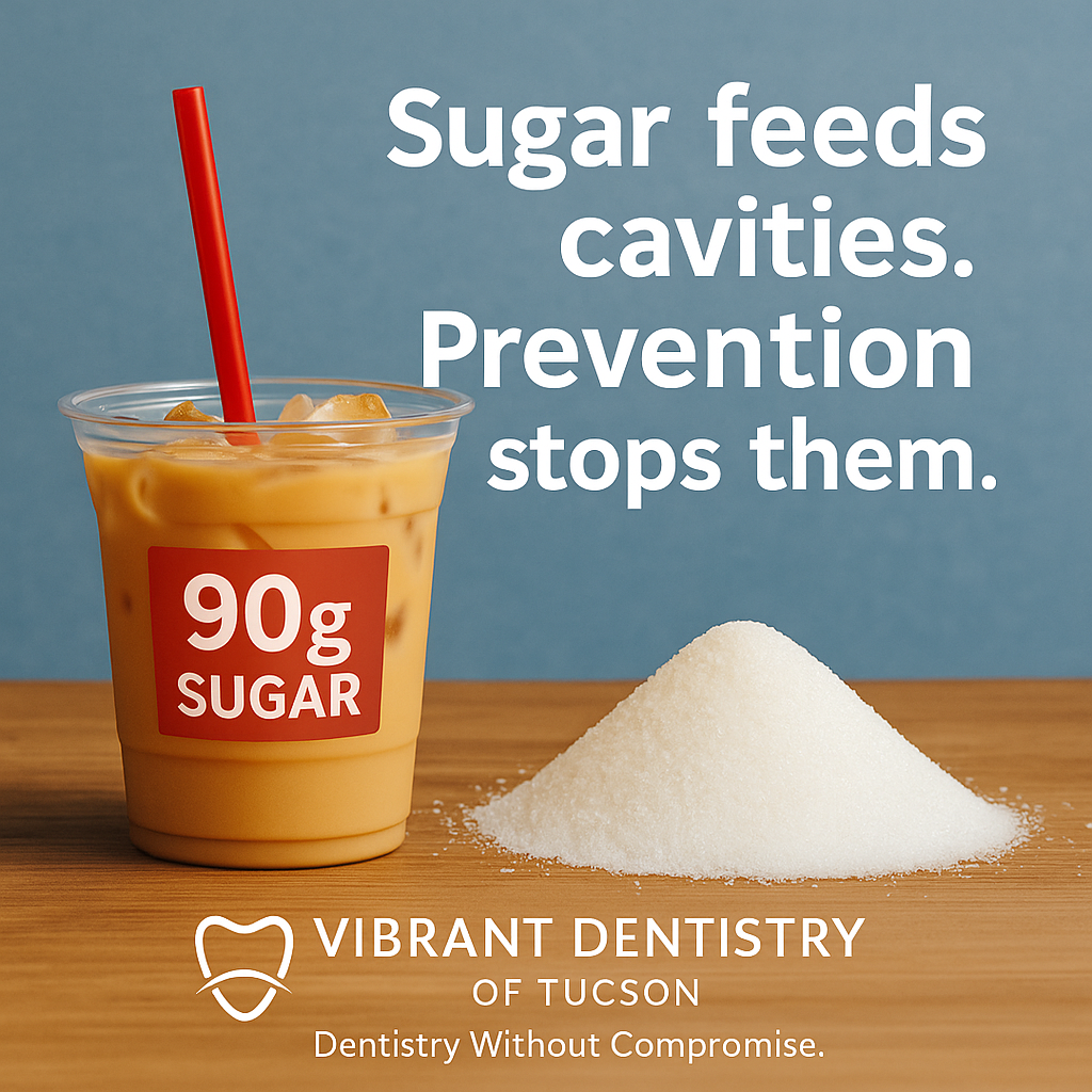 At Vibrant Dentistry of Tucson, our mission isn’t to shame sugar lovers — it’s to protect your future self from unnecessary pain.